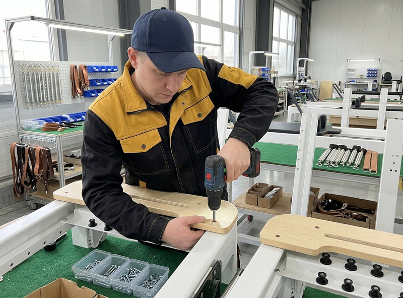 Avant validation, chaque machine Pilates PilatPro est soumise à un contrôle qualité complet : solidité, fluidité, tension des ressorts et finitions.