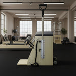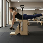 Le Reformer est une machine inventee par Joseph Pilates, composee d'un chariot mobile et de ressorts, permettant un travail musculaire fluide, progressif et sans impact articulaire.